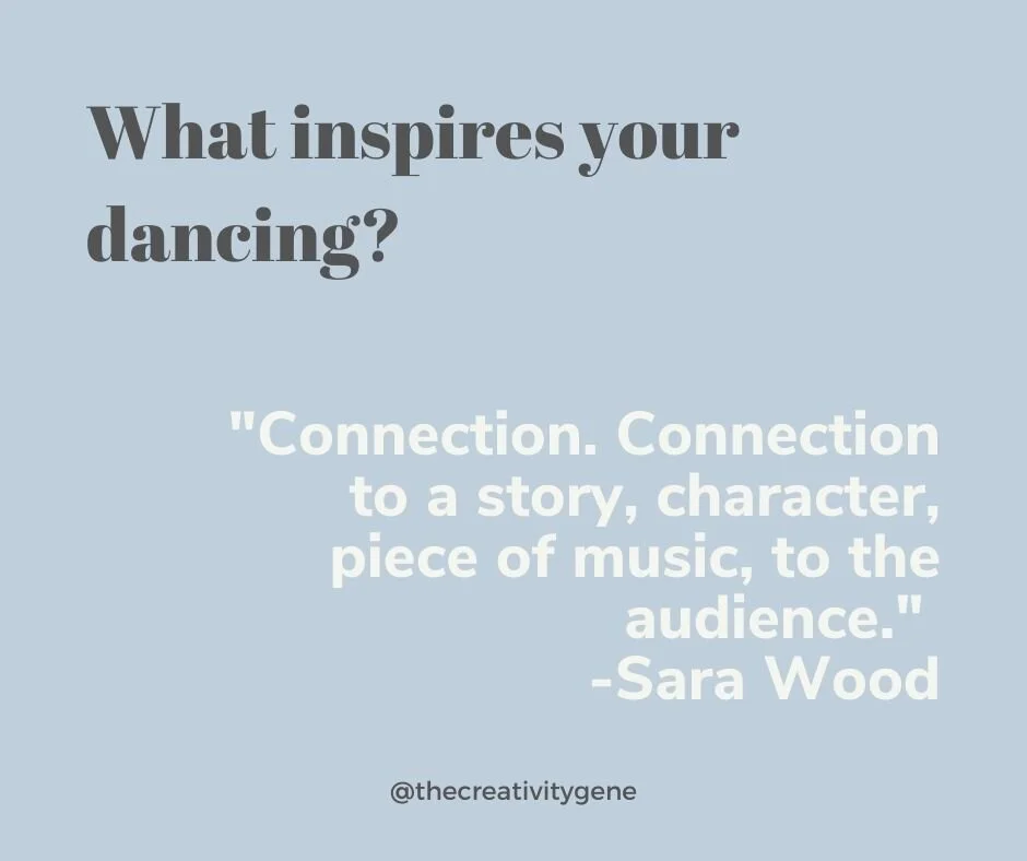 Sara: Connection. Connection to a story, character, piece of music, to the audience. Dance is such an interactive art form, and I strive to create experiences and memories for others, to make sure that they feel something during and after a performance.